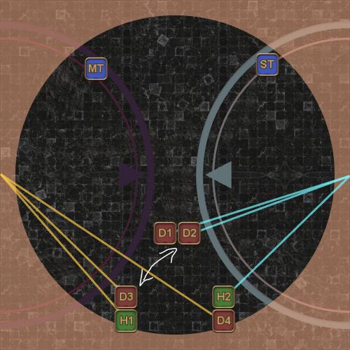 | 8. Mortal Vow pass #1 The DPS that Nidhogg targeted with Mortal Vow passes it to the MT in the middle of the arena. | ![]() |