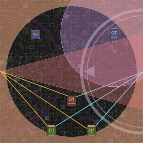 | Heads down means tanks near, party far. The MT takes the southern-most position. | ![]() |